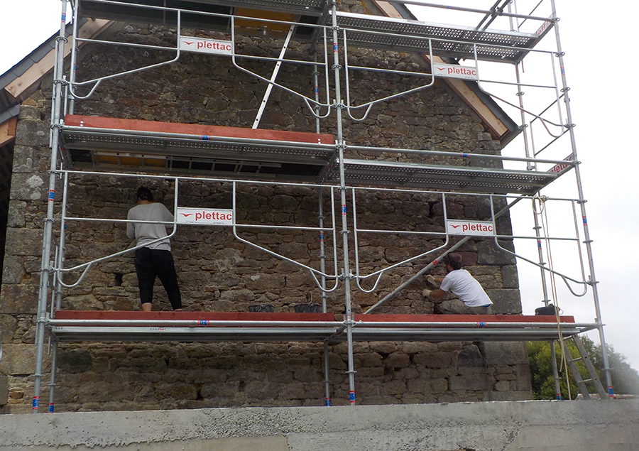 Prochaine étape – finalisation de la maçonnerie, pour monter le pan Sud de la longère, puis insuffler la ouate de cellulose dans le caisson et couvrir.