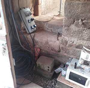 Bilan de la semaine : le câble passe le long de la sablière dans la longère et arrive dans le haut, au niveau de l’atelier. Une nouvelle prise a été commandée.
