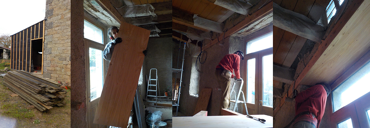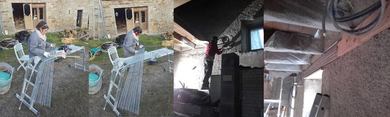 La chaux ne collant pas sur le bois, cette structure est une accroche supplémentaire pour la reprise chaux/chanvre (images 3 et 4).