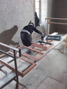 La suite : aller chercher la presse à briques, protéger les hauts de mur de l’atelier, la maçonnerie pour la buanderie, la menuiserie pour les cloisons, faire les briques et peut-être bientôt les enduits à l’intérieur avec le retour des artisans avant la pose de la première partie de l’escalier !