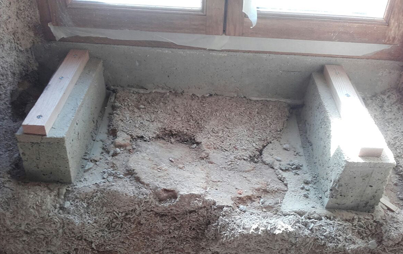 Concernant la maçonnerie préparatrice à la projection des enduits, il nous reste les bas de fenêtres. Il y a maintenant bientôt deux semaines, nous avons coulé les cales sous les fenêtres. Nous avons préféré attendre pour nous assurer que la prise du béton était suffisante vu les températures des derniers jours.