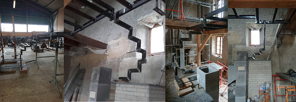 Pendant nos tests de briques, Guillaume travaillait sur l’escalier.