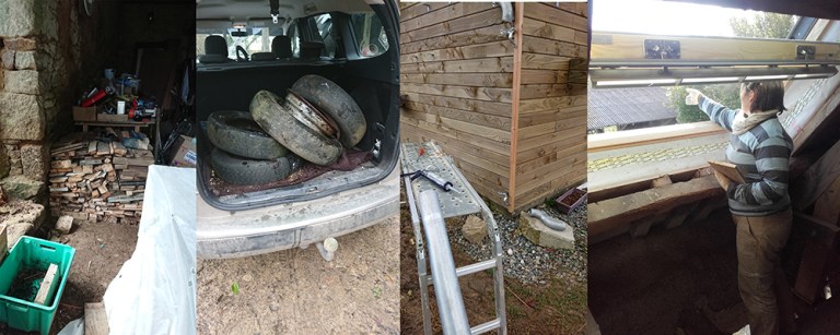 - Vide du grenier de la maison, avec une technique assez plaisante du jeté de bois par le vélux (image 4).