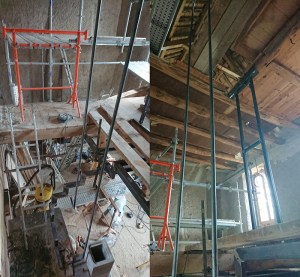 Guillaume va aussi nous installer des poteaux qui vont servir à monter des portions de cloisons à l’étage (photo 2).