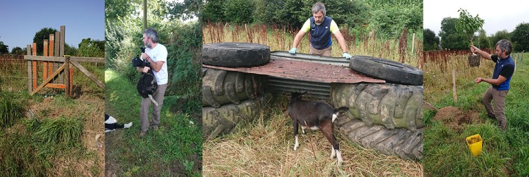 Mardi, après une nuit à Keraël, nous avons profité de la présence de Gaëlle et Camille pour planter le yuzu au bord du champ (image 4), qui attendait sagement dans son pot depuis 2 mois, il était temps. Le dernier pommier a été aussi protégé.
