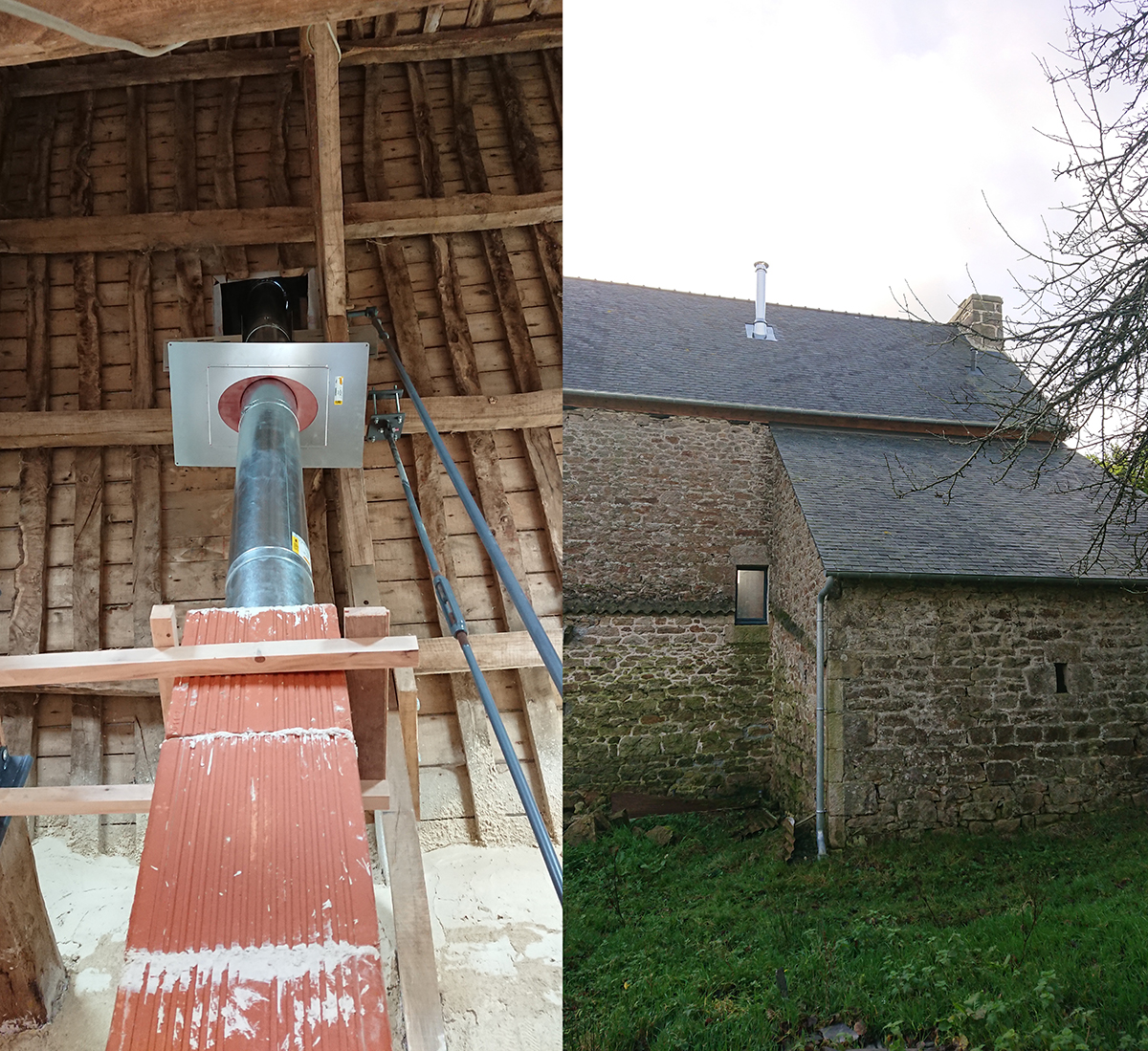 Entre noël et le jour de l’an, le couvreur est venu installer le conduit de sortie du poêle.