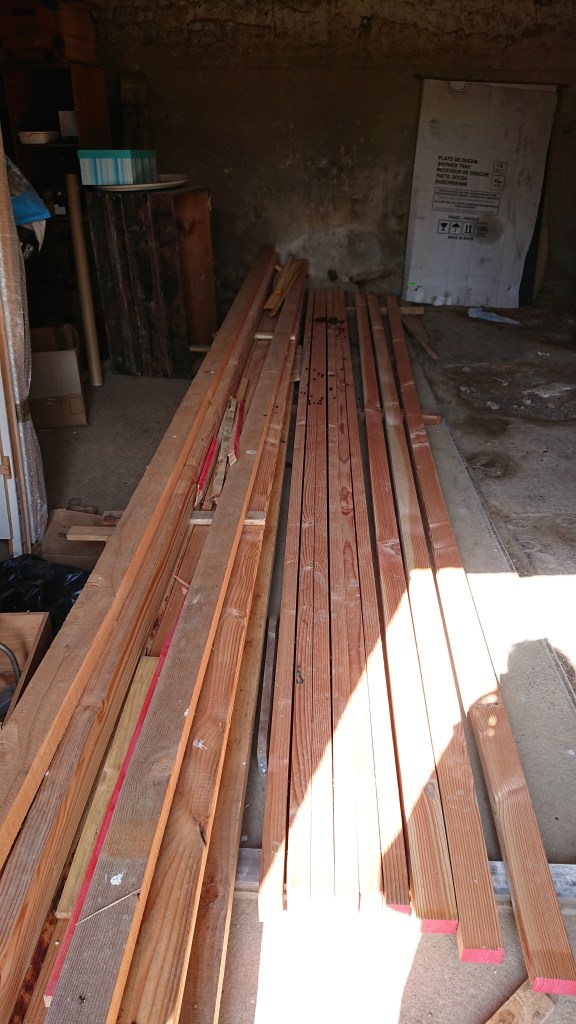 Côté préparation aussi, nous avons nettoyé le sol de la future salle de bain (image), afin d’installer un dépôt de briques ! ENFIN, un an après les avoir réalisées, nous allons bientôt démarrer la cloison de la salle de bain et des toilettes (à partir de jeudi).