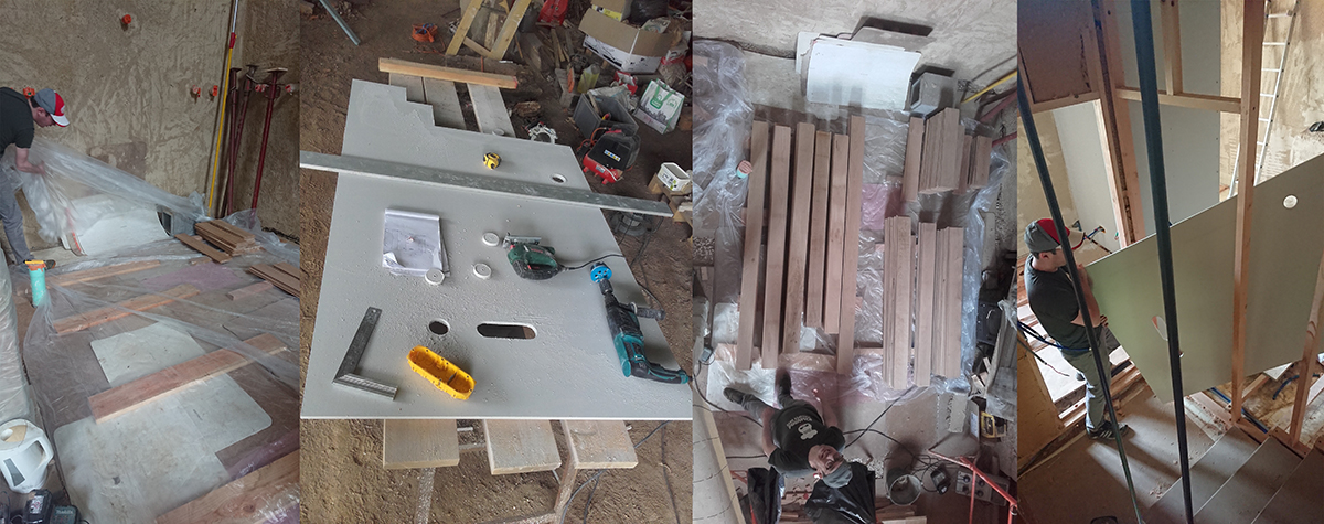 Côté salle d’eau : poser le fermacell intérieur et extérieur sur l’autre pan de cloison, avec beaucoup de découpes (même chose pour la laine de bois).