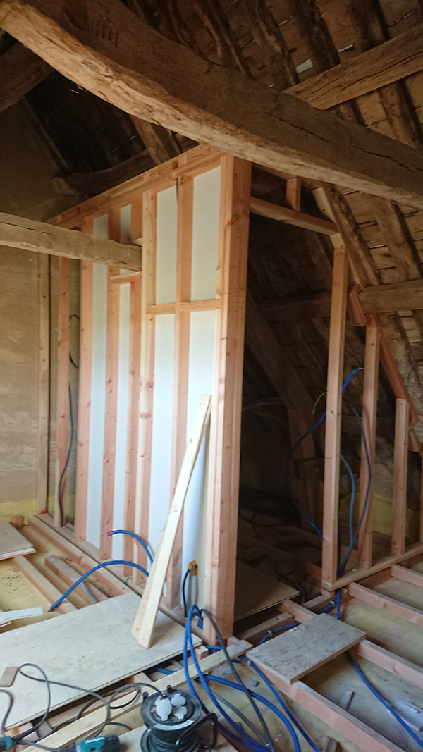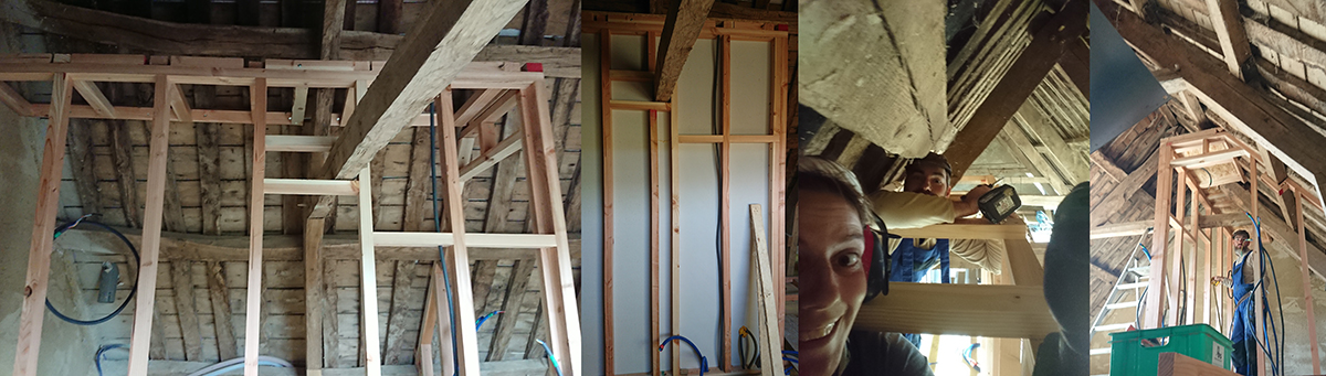 Nous avons continué de travailler sur la salle d’eau : du bois, de l’électricité, du fermacell, de la laine de bois … Retours sur ces deux dernières semaines.
