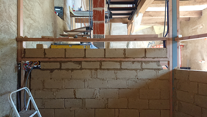 Nous avons marqué l’emplacement des éléments, ce qui m’a permis de tirer les câbles pour l’élec. Nous créerons plus tard un caisson dans lequel sera rangée la VMC et le boitier de terre.