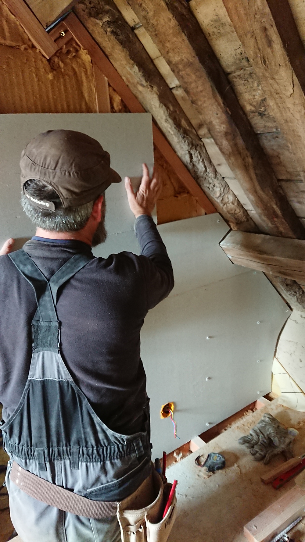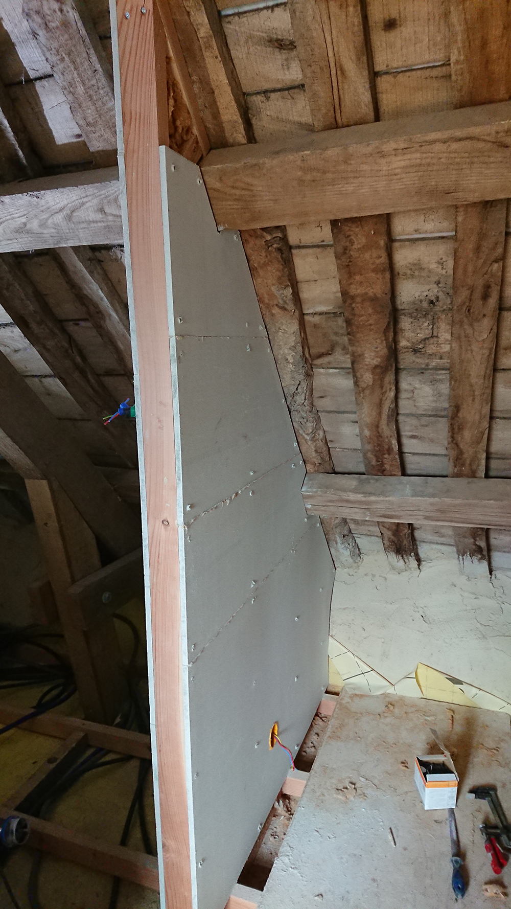 Nous avons terminé la cloison de la salle d’eau du grenier.