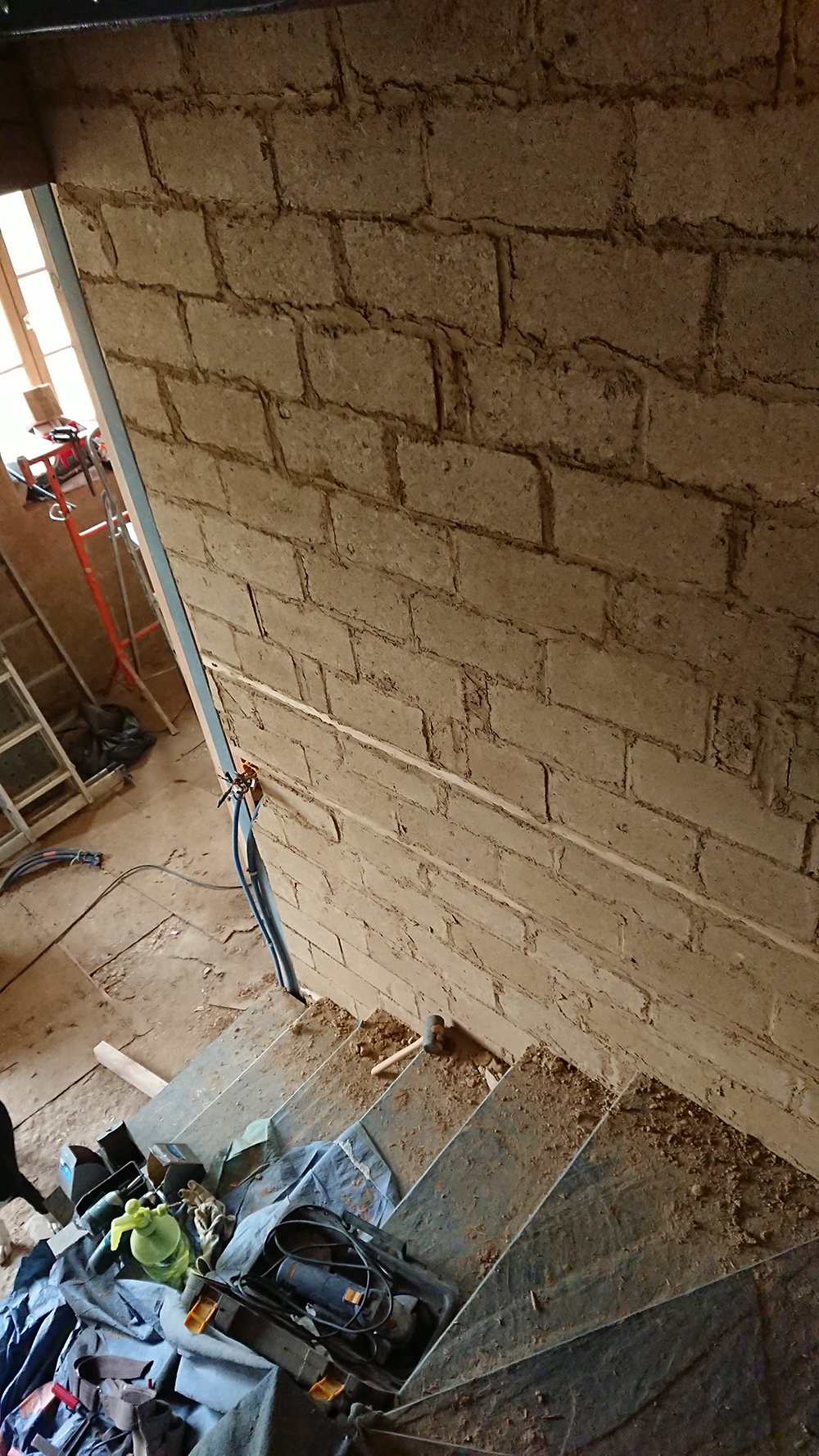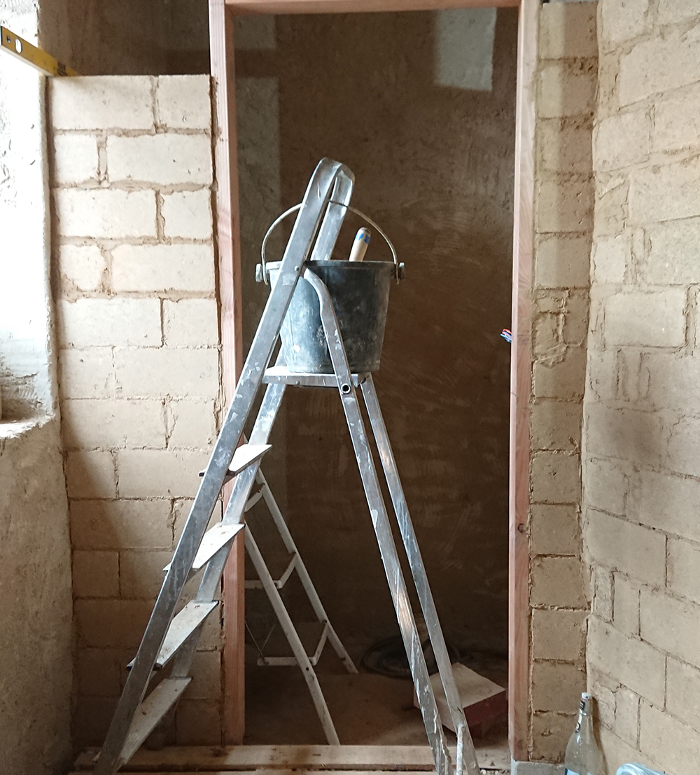 Nous avons terminé la cloison en brique pour la salle de bain du RDC ainsi sur pour les toilettes.