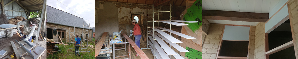 En parlant de plafond, j’ai commencé la peinture des nouvelles planches de voliges achetées pour réaliser le plafond de la trémie (images 2 et 3).