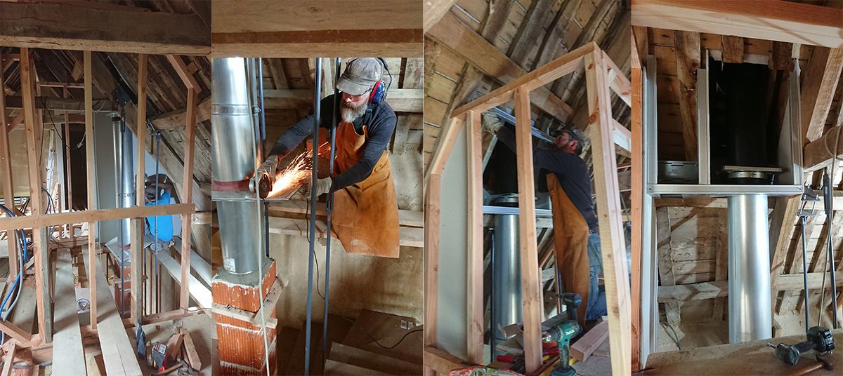 Nous nous sommes ensuite penchés sur le caisson qui vient se poser autour de la partie haute du conduit de cheminée (images 3 et 4).