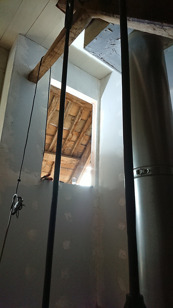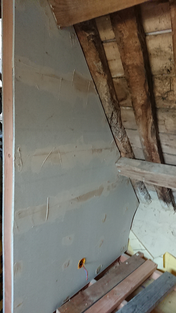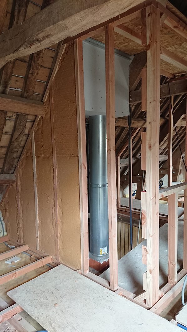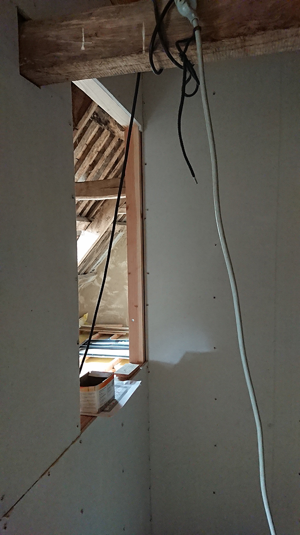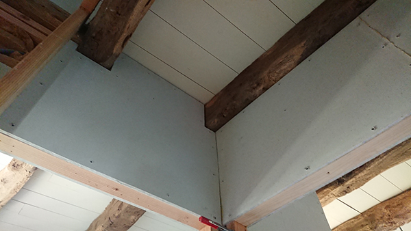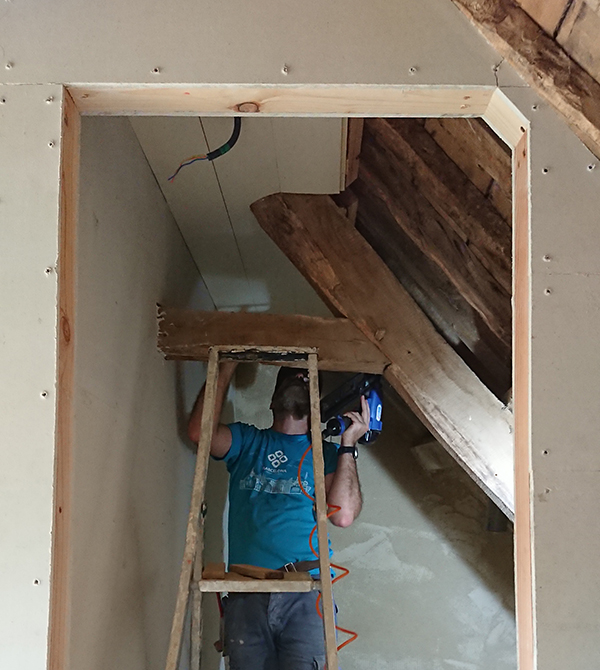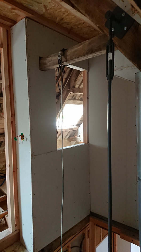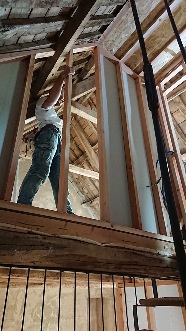 De notre côté, nous avons finalisé les plafonds de la salle de bain du grenier et de la trémie.