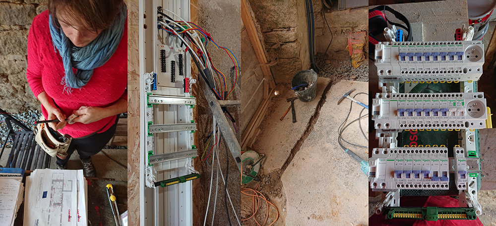 Suite du démêlage des arrivées électriques dans la goulotte. Après l’opération spéléo en testant quelques câbles ayant perdus leurs étiquettes, j’ai continué à organiser les arrivées en les rangeant dans la goulotte (image 1 et 2).