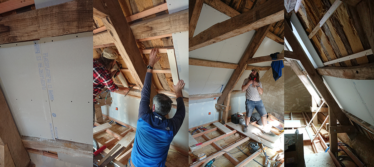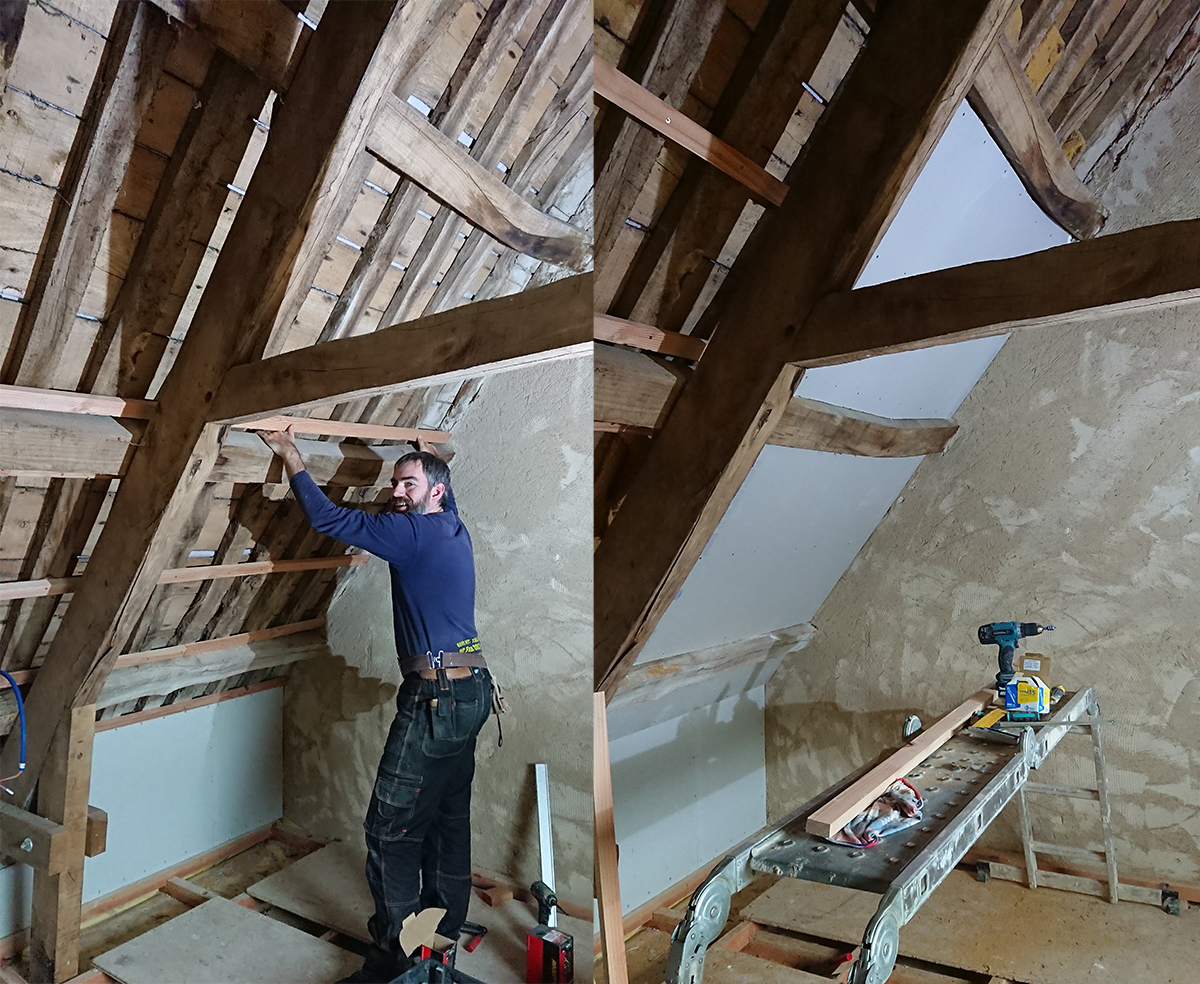 - finaliser le placo au grenier, le long des pignons pour que les maçons puissent venir faire les enduits sur ces deux zones.