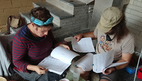 Les maçons ont ensuite pris la chaux en main. De mon côté, je réalisais les mélanges, profitant de petites pauses pour aller tamiser du sable.