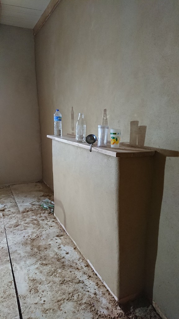 Une journée de travail pour réaliser 6 mélanges et finaliser la chambre Ouest. Ces quelques jours passés laissent ainsi voir une différence de couleur entre les pans de mur en fonction du séchage.