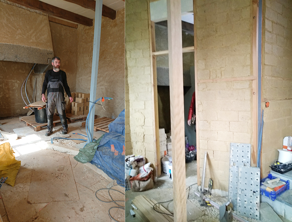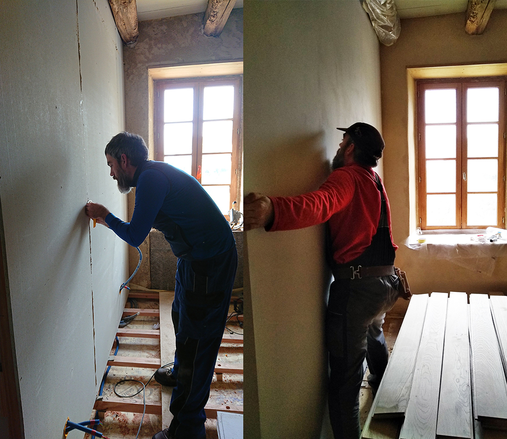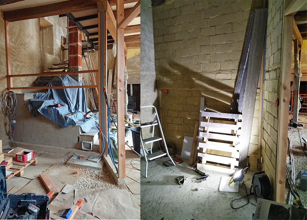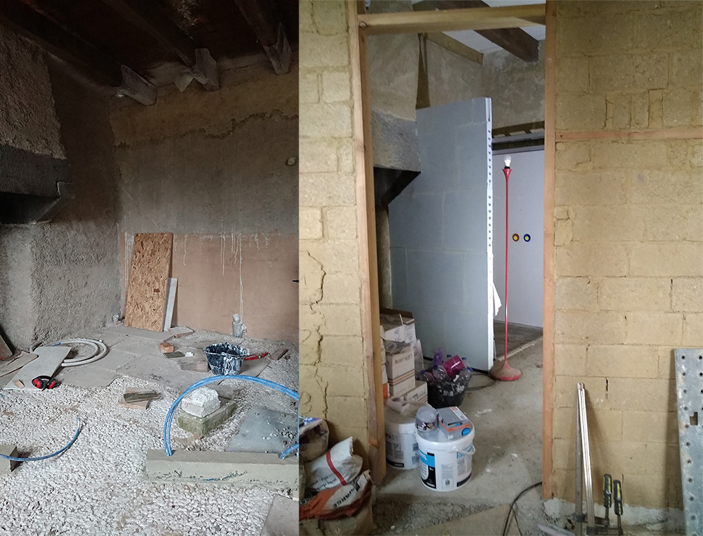 - Assisté les maçons pour la chape sous la cheminée de la cuisine et la création d’une aération dans la cheminée de la salle de bain.