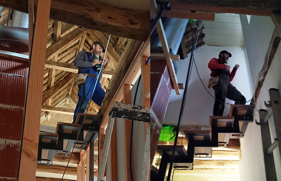 - Commencé la pose des lambourdes et contres lambourdes au grenier et au 1er étage