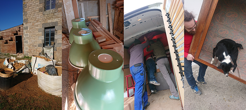 Entre ces étapes, le petits ateliers avancent gentillement : les luminaires de la cuisine sont peint et nous avons même trouvé les bonnes ampoules, le luminaire de l’entrée est terminé, j’ai commencé un second big bag de sable tamisé, mais j’attends la fin des tempêtes et de la grêle pour reprendre de temps en temps. Et le déménagement est terminé.