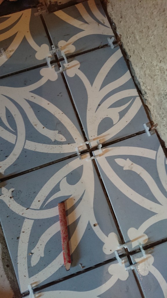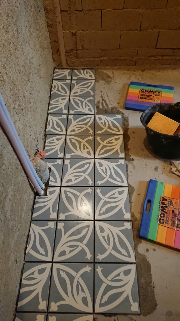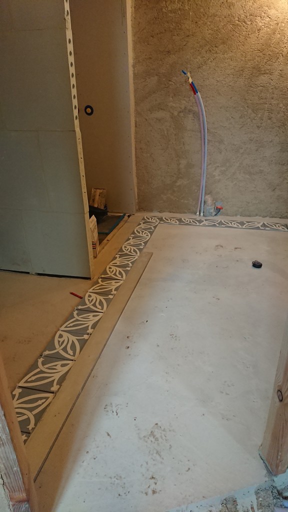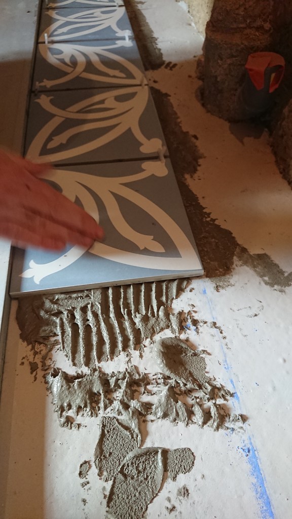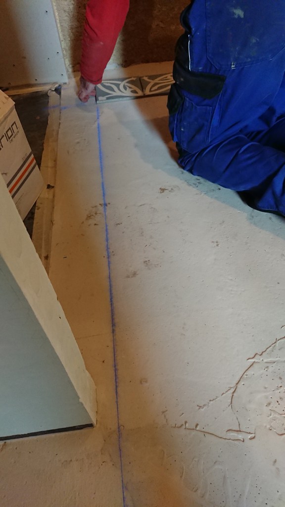 - Nous allons pouvoir continuer la pose du carrelage de la salle de bain.
