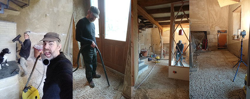 Petite journée aspi au RDC pour préparer la pose de la tomette ou dans un premier temps les nus qui seront nos supports à niveau à partir desquels nous viendrons tirer la chape maigre et poser au fur et à mesure les tomettes.