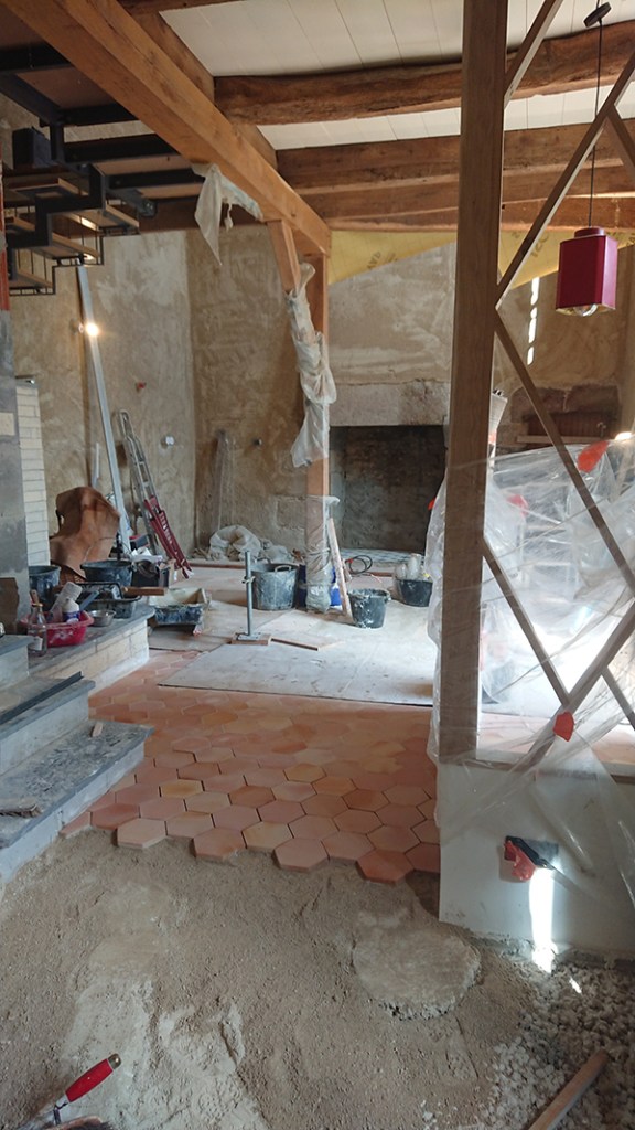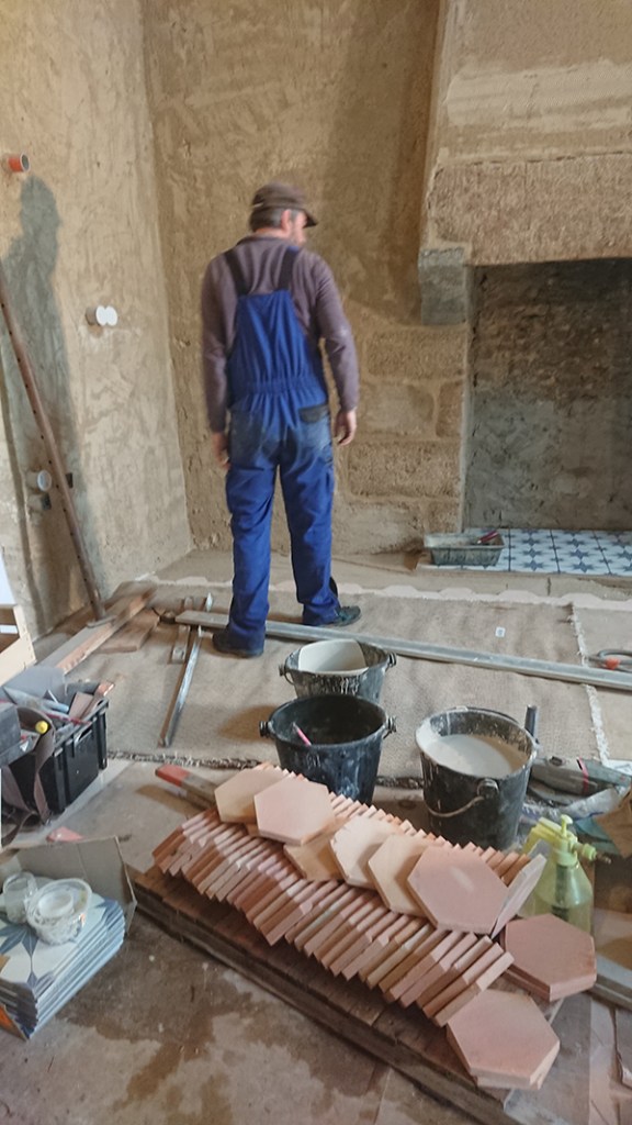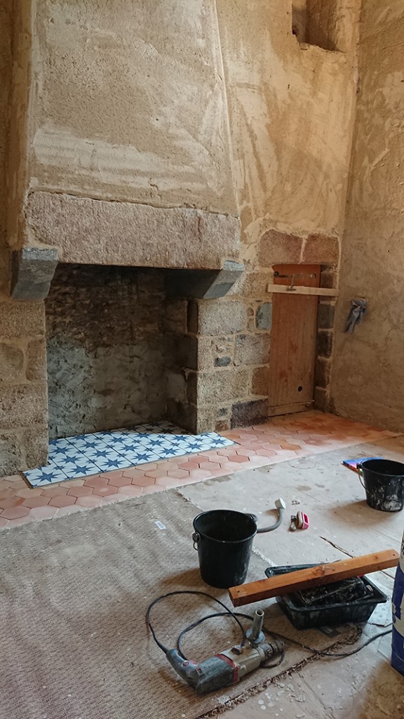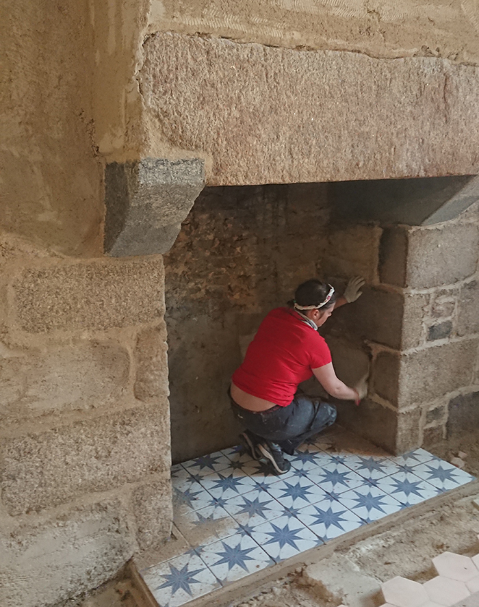 Entre temps, profitant des étapes où Gwen tasse la chape maigre lors de la pose de la tommette, j’ai continué le nettoyage des pierres.