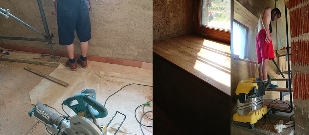 - fixer les tablettes devant les deux fenêtres du RDC, protéger le bois (image 2)