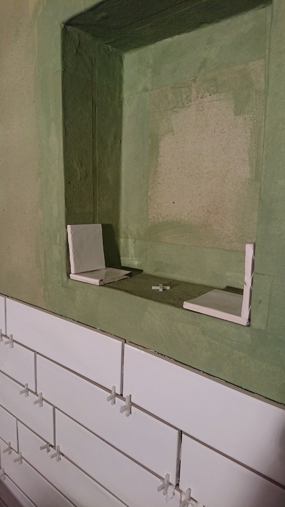 Nous étions ensuite rodé pour le début du carrelage de la douche, les niveaux une fois noté sur la paroi.