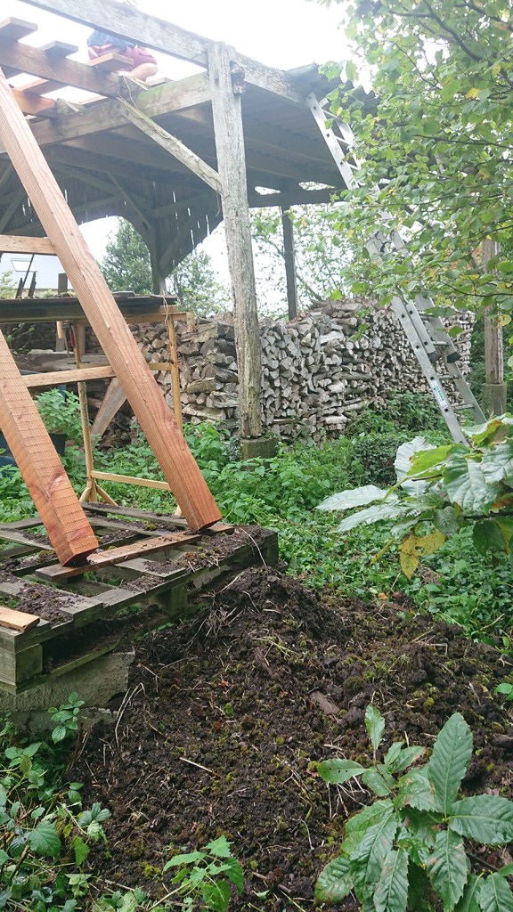 Nous avons commencé ce chantier il y a un moment, et puis nous avons commandé des bacs acier et … puis nous avons attendu le bon moment : la venue de Tomate bien entendu 🙂