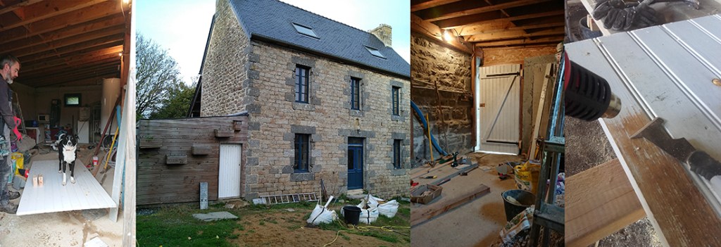 Premier week-end après la rentrée, si samedi, nous avons avancé sur les portes et autres peintures, nous avons opté pour la suite de l’atelier sur le hangar avec Laura et Nico (nouveaux habitants de langonneau).