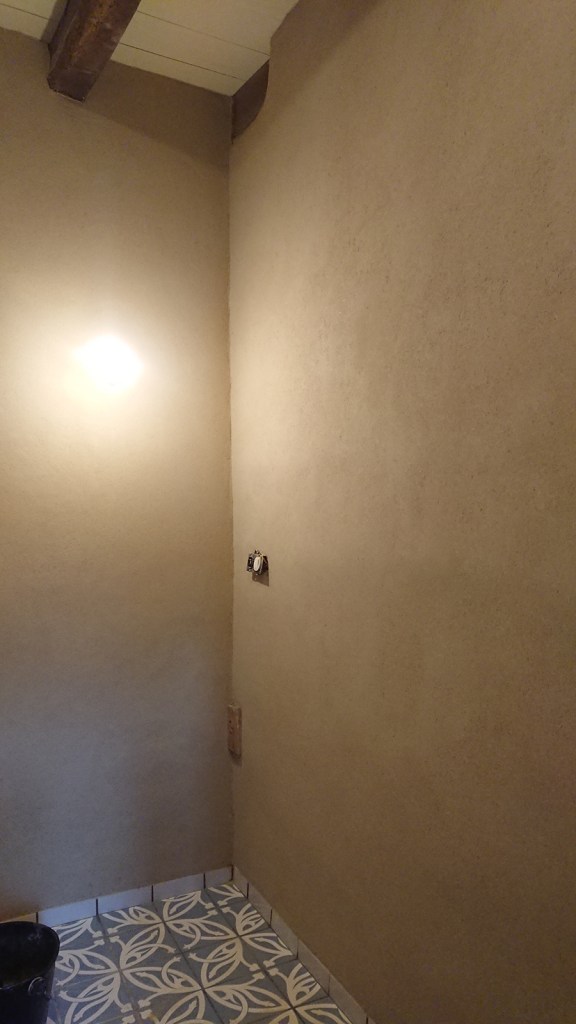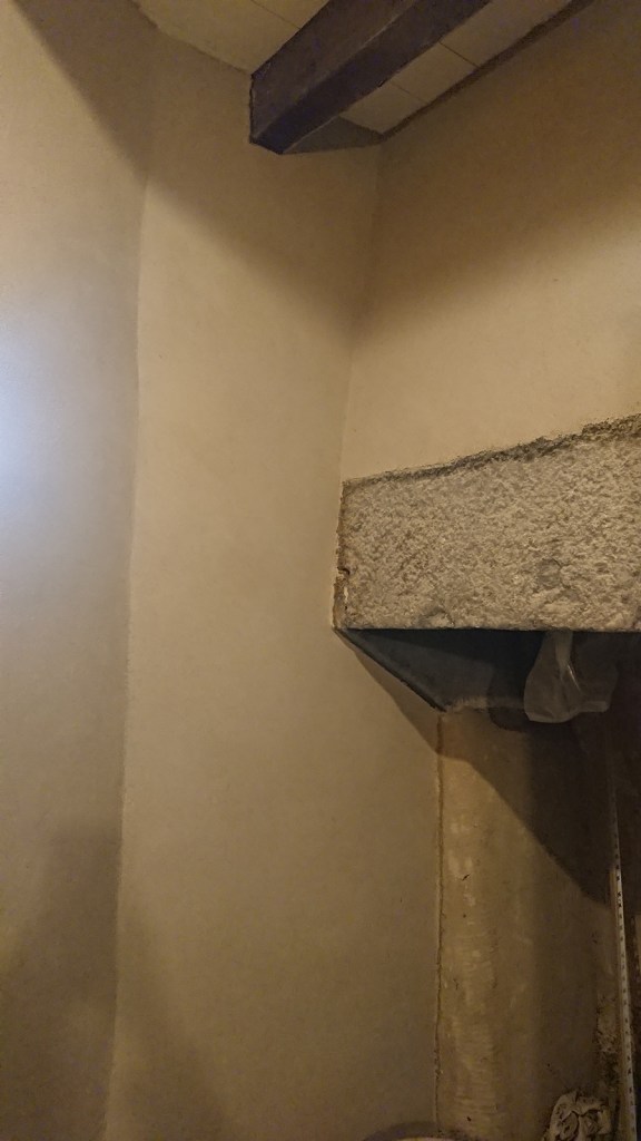 Mercredi soir, la salle de bain, les toilettes, le conduit et le corps du poêle étaient enduits.