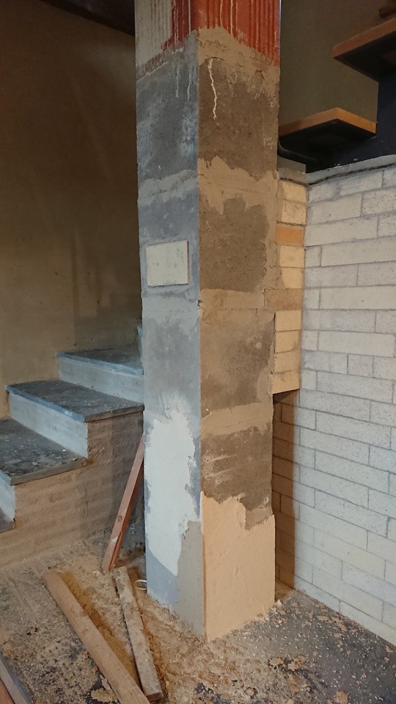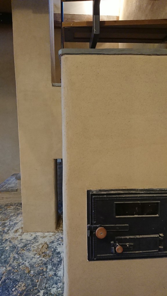 Encore du nouveau, du tout beau du tout gros, des enduits terre sur le poêle.