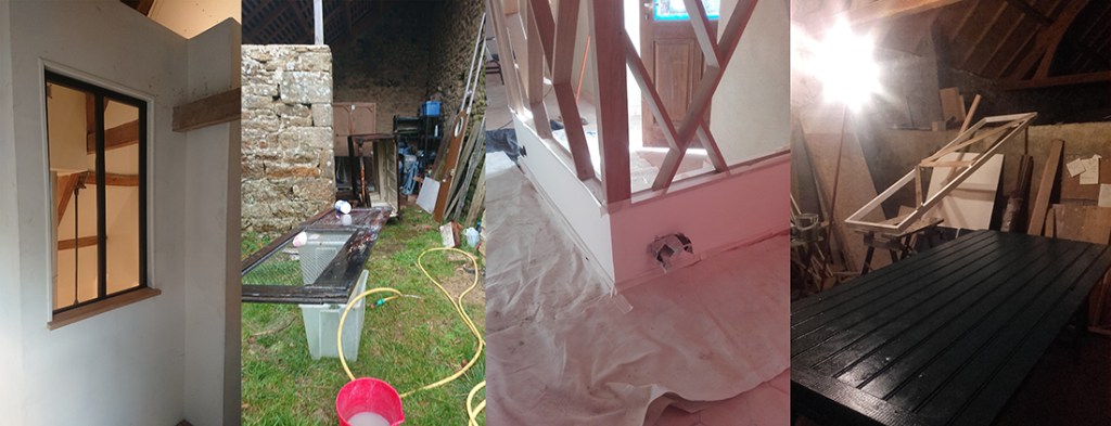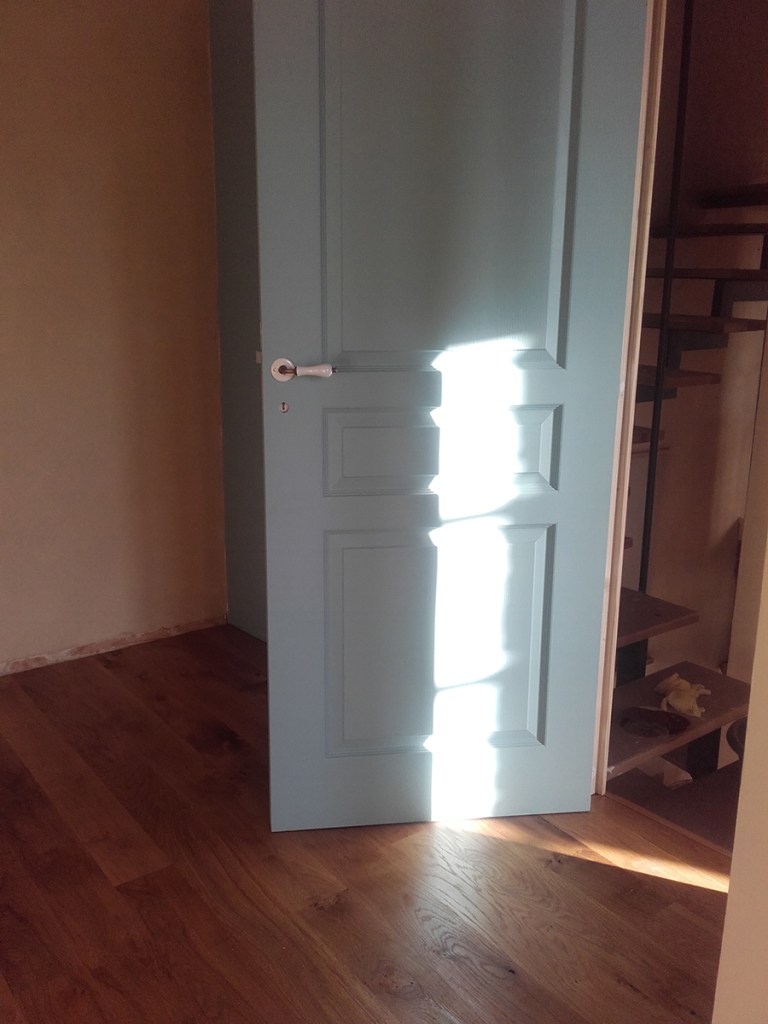 - La porte de la buanderie a reçu toutes ses couches de peinture, même sur les ferronnerie et nous pourrons la poser très prochainement.