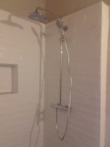 Il a profité de son passage pour nous installer la colonne de douche.