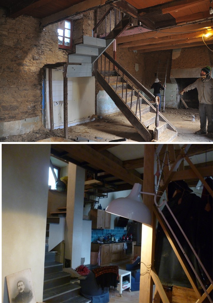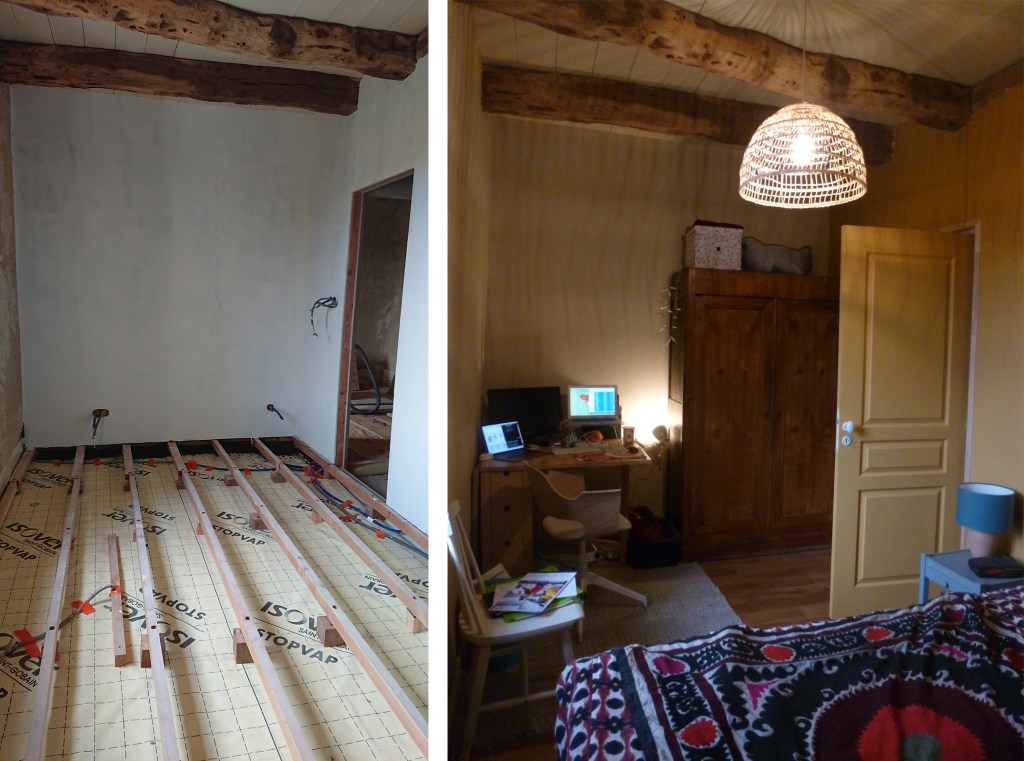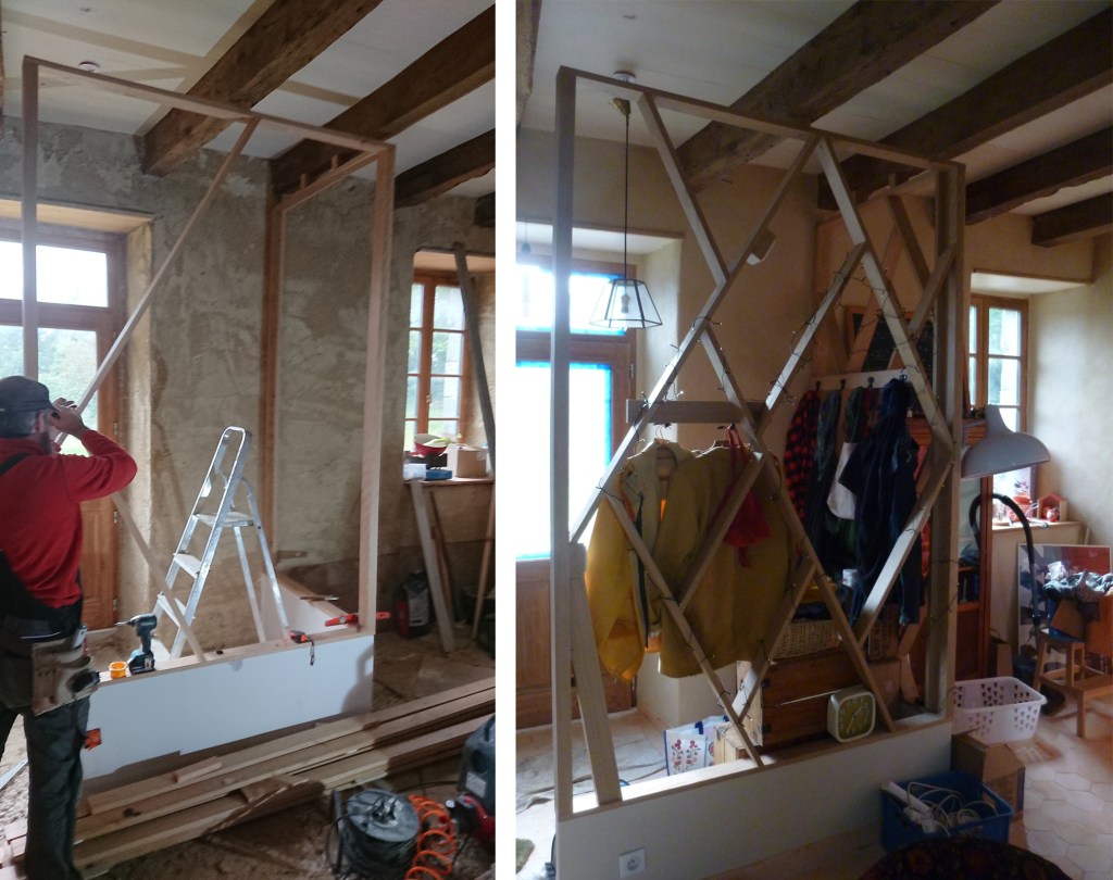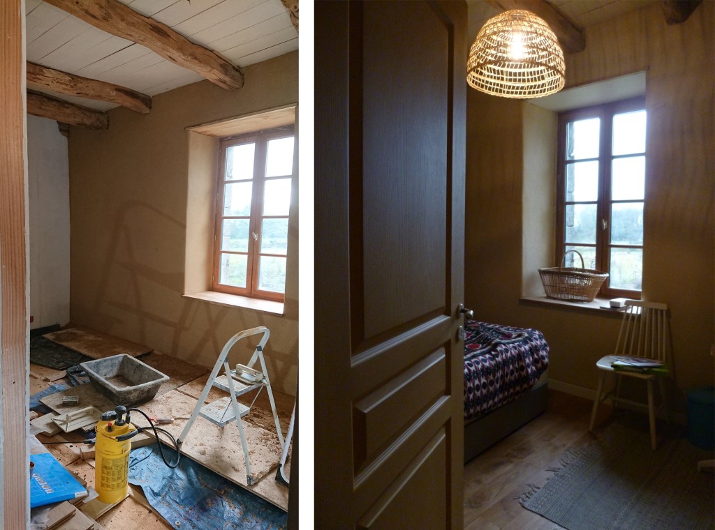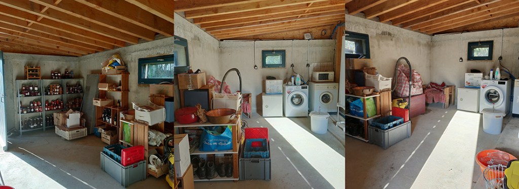 Sur un beau dimanche matin, en 1h30, nous avons rangé et trié les outils, en aménageant un atelier dans la longère et en installant le lit de chipouillette dans une pièce rangée et pratique.