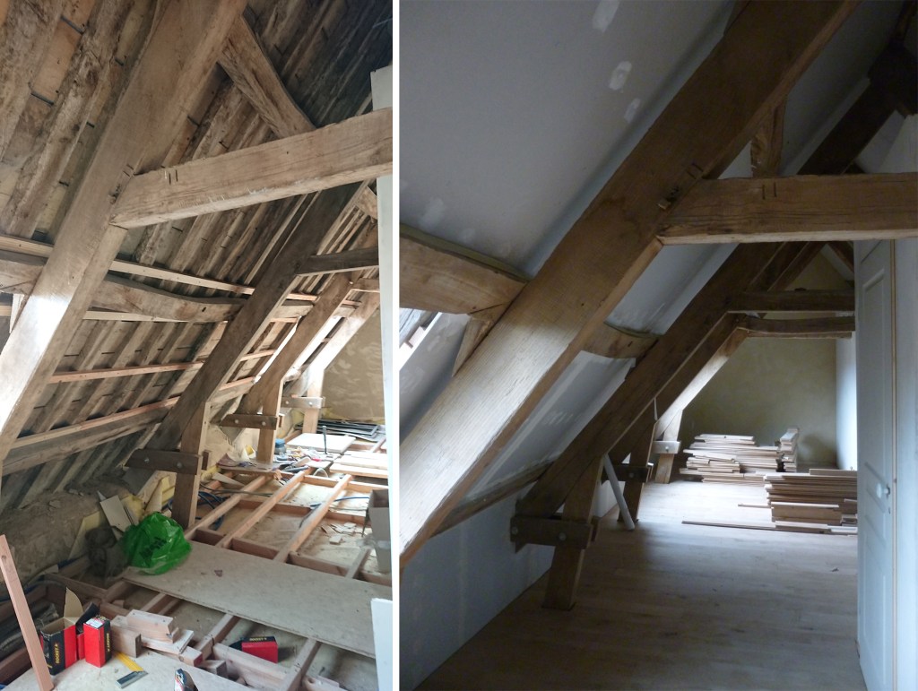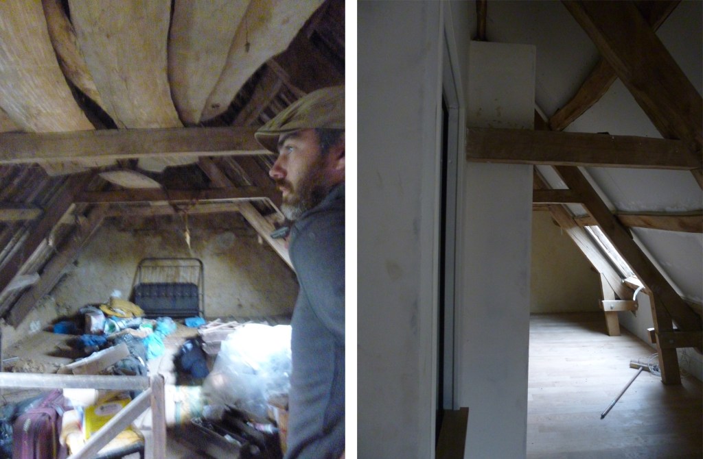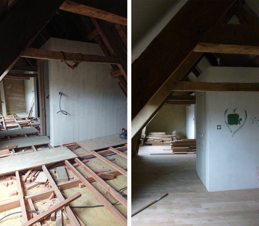 - J’ai repris le ponçage du grenier. Dans l’idéal je pourrais passer une première couche d’huile dure, mais vue son odeur, je vais goupiller ça avec un moment où nous quitterons la maison au moins pour une demie journée.