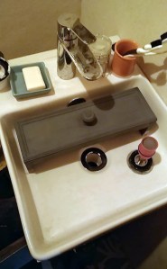 Côté lave-main justement, nous avons déjà fait deux petits changements sur l’installation de base : cause de fuites.