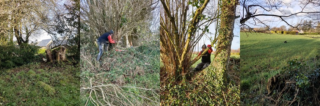 Les poules et la chipoule apprécient c’est petits espaces bien dégagés. Maintenant c’est opération fagots et tas de bois. On en a encore pour quelques heures.