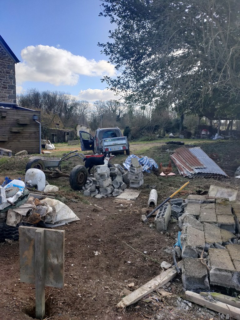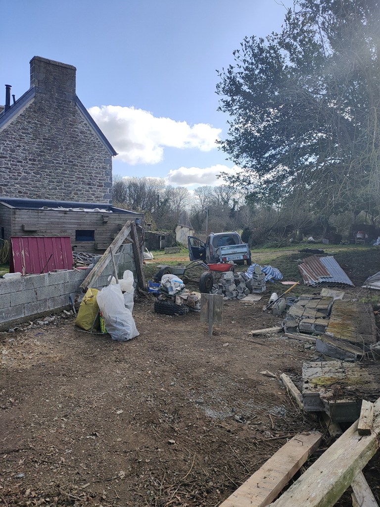 Nous avons encore pas mal de gravats à vider et nous allons essayer de récupérer encore un peu de terre.