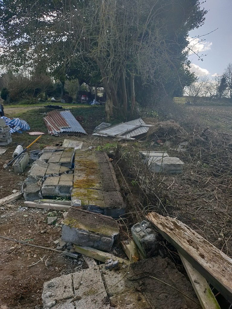 Rien de tel qu’une démolition, pour reprendre la main sur les lieux. Ronces coupées, parpaings entiers mis de côté, déchets jetés.