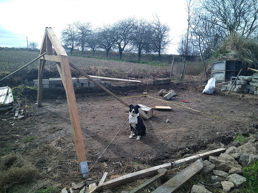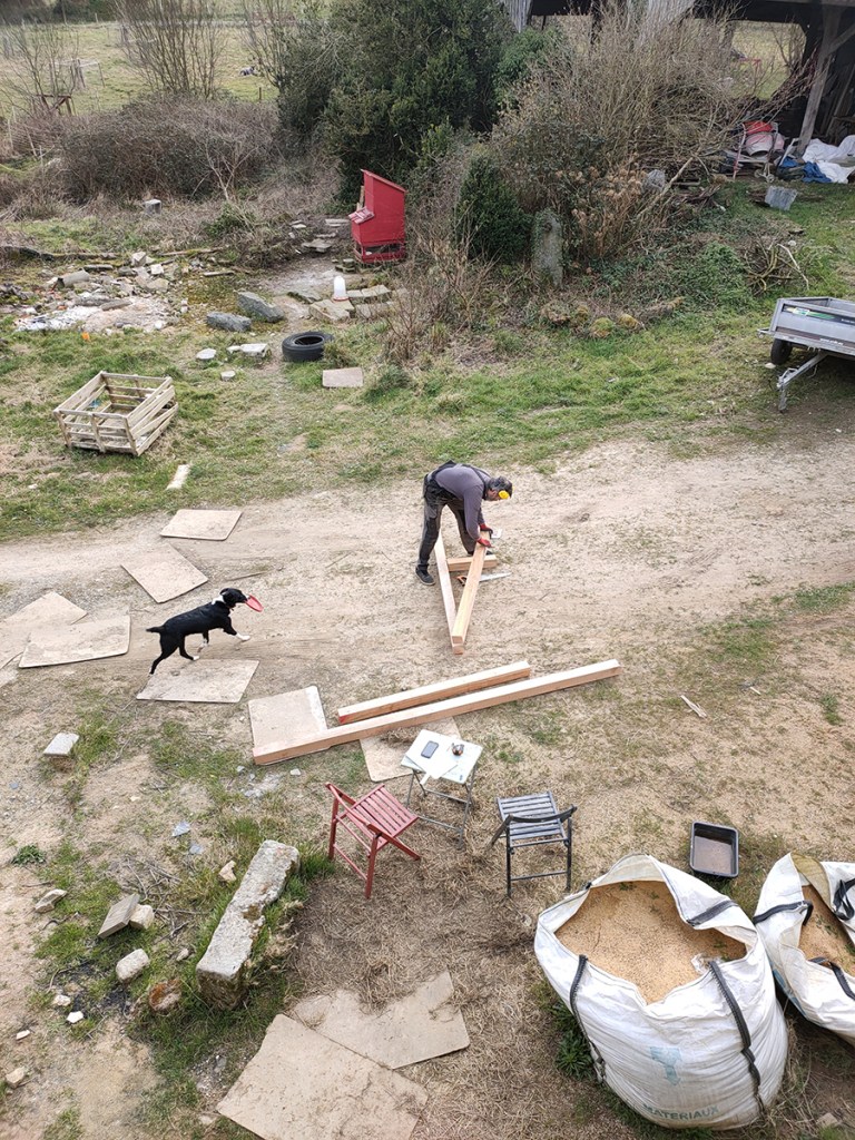 Après la construction de la première ferme, nous avons attendu le passage de Tomate pour l’installer in situ. Gwen a préparé la seconde, plus rapidement, et nous avons réussi à l’installer à deux.