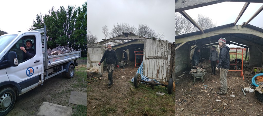 3 paires de bras pour aider Gwen pendant les vacances scolaire pour : vider le métal (une accumulation de 5 ans), vider les poubelles, démonter le petit hangar (au revoir le cabanon du dancing des caraïbes).