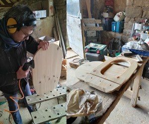 Bonus : l’installation d’un abattant pour une assise au top. (image 1 Julien au ponçage avant découpe de l’abattant).