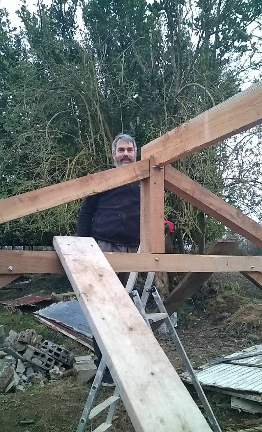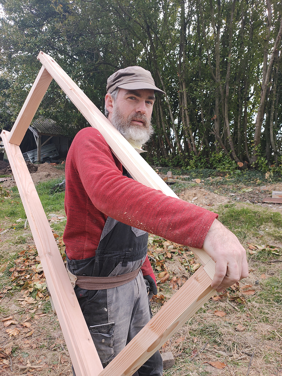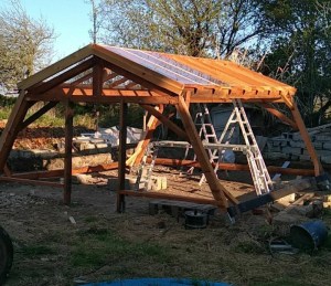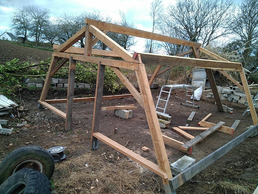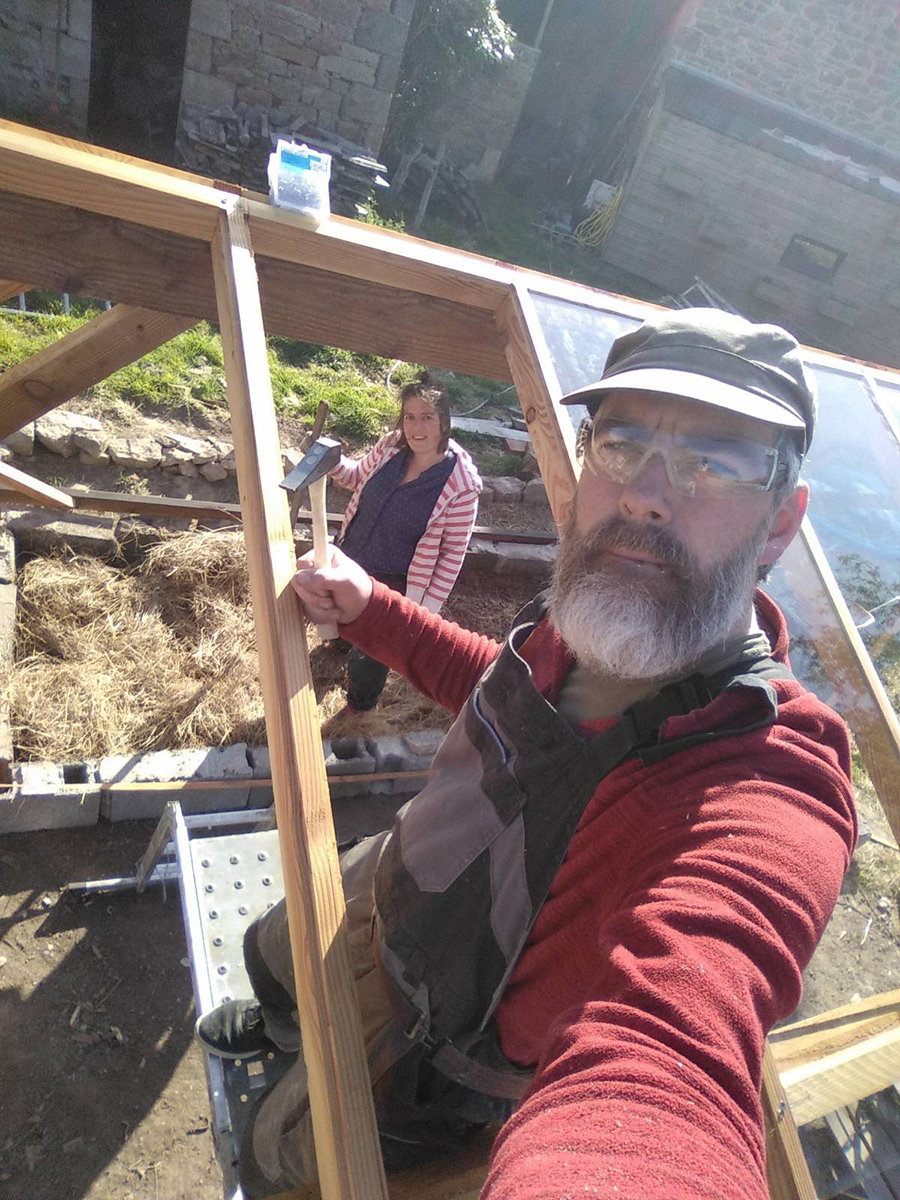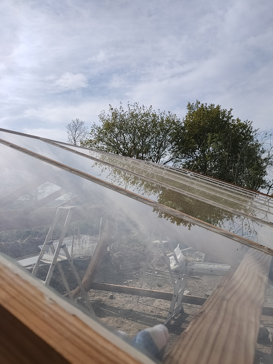 Les deux pentes sont terminées, il doit ensuite s’attaquer aux côté, c’est d’ailleurs ce qui nous manque pour bloquer les vents et planter nos jeunes pousses.