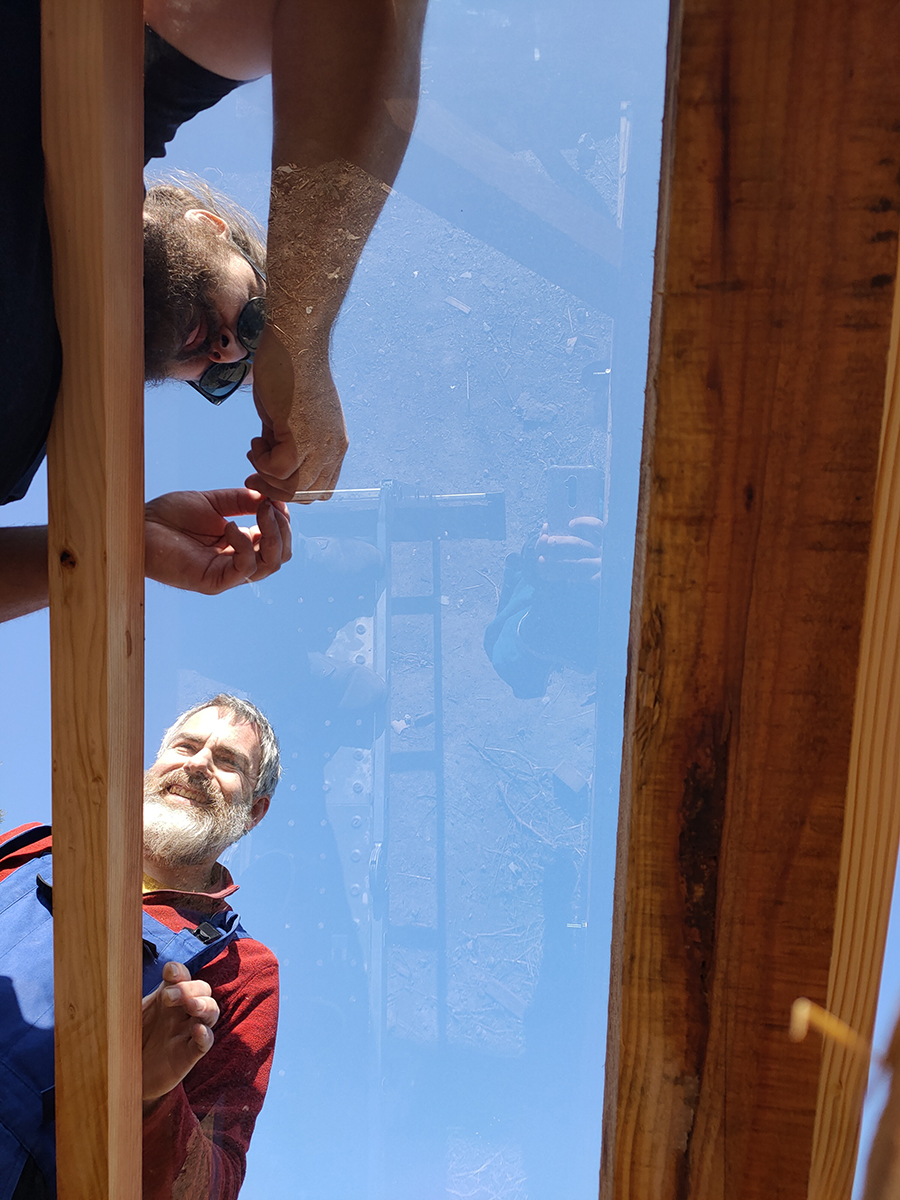 En vrac : la menuiserie, un cour de découpe et pose du verre par Nico, l’huile de lin, la prépar des bacs, le bardage, …