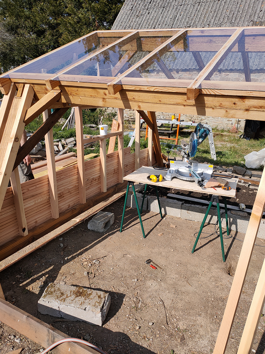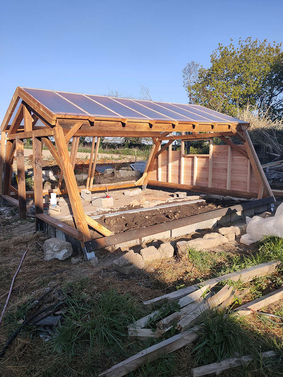 Le clou du spectacle mais surtout le centre de nos activités et réflexions du moment. La serre est maintenant en place, même si pas tout à fait terminée.