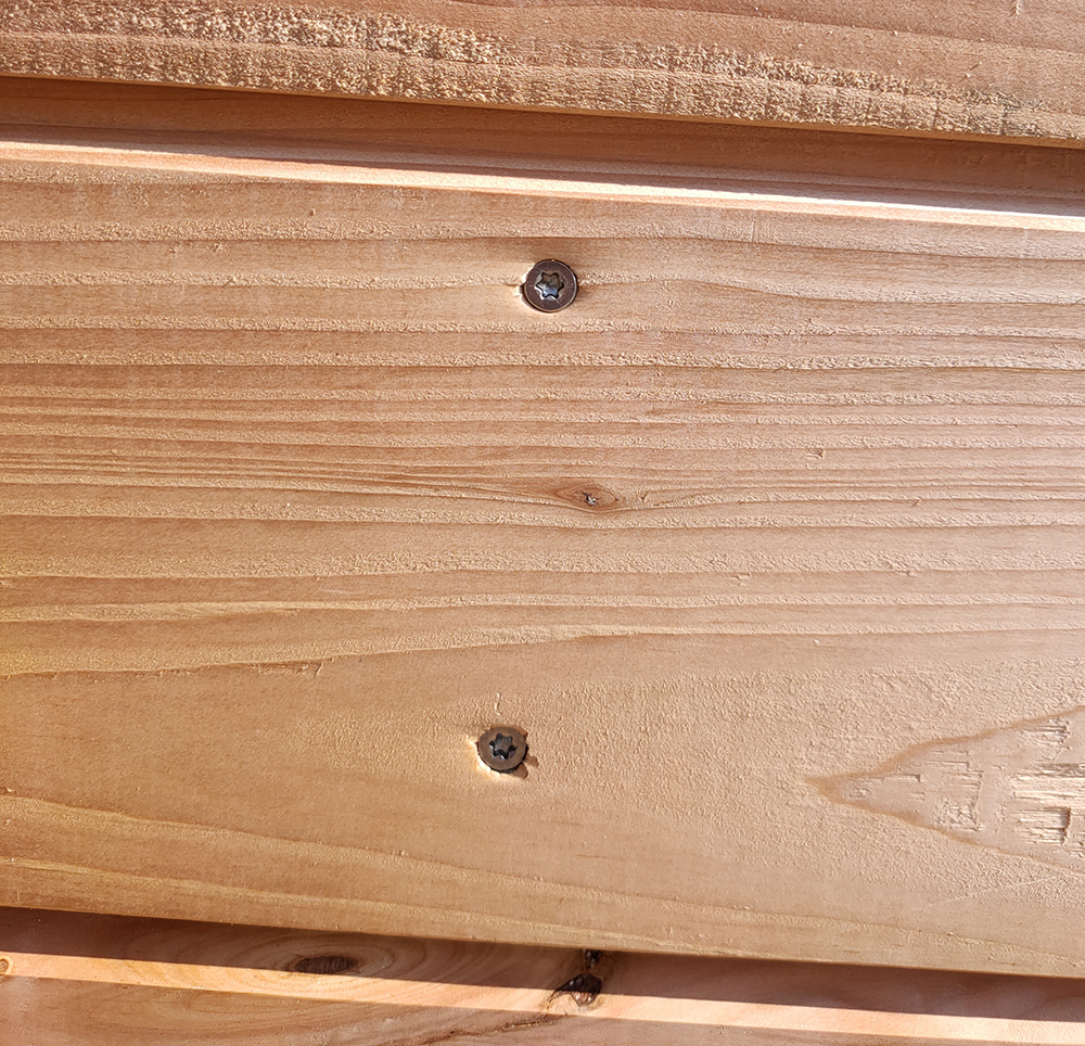 Sur la façade Nord, nous avons finalement décidé de poser du bardage, en douglas tout comme l’est le reste de la serre.